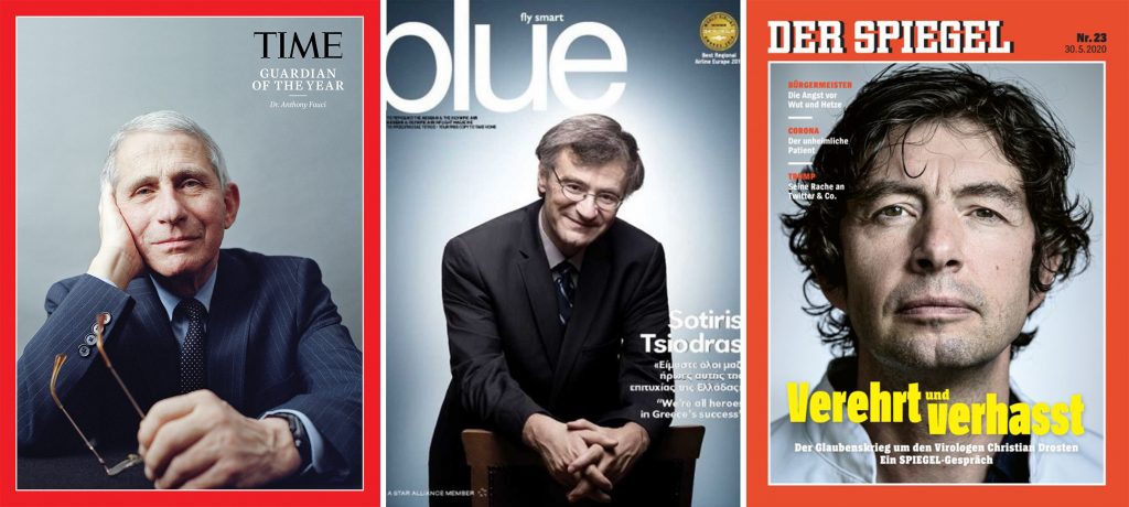 Παράλληλα όμως με τους προβεβλημένους λοιμωξιολόγους και επιδημιολόγους, στη δημόσια σφαίρα αναδεικνύονται πολυάριθμες ακόμη φωνές. Αρκεί να αναρωτηθούμε πόσοι γνώριζαν τέτοιες ημέρες πέρυσι την Καθηγήτρια Εντατικολογίας Αναστασία Κοτανίδου; Πόσοι άκουγαν τρεις φορές την εβδομάδα τις τοποθετήσεις του επίκουρου καθηγητή Υγιεινής και Επιδημιολογίας, Γκίκα Μαγιορκίνη; Πόσοι ακολουθούσαν στο facebook και το twitter τον Ηλία Μόσιαλο και τον Μανώλη Δερμιτζάκη; Ή ποιος θα το έλεγε ότι πολλά μέσα θα ανακήρυσσαν «Προσωπικότητα της χρονιάς» τον μέχρι πρότινος άγνωστο στο ευρύ κοινό, CEO της Pfizer: Τον Θεσσαλονικό Άλμπερτ Μπουρλά που ηγήθηκε της προσπάθειας ταχύτατης ανάπτυξης του πρώτου εγκεκριμένου εμβολίου κατά της Covid-19.