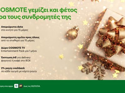 Deasy Η COSMOTE γεμίζει δώρα τους συνδρομητές της και φέτος τα Χριστούγεννα – Απεριόριστα data στο κινητό για 15 ημέρες – Απεριόριστη ομιλία προς όλους από το ... By Deasy19/12/2023