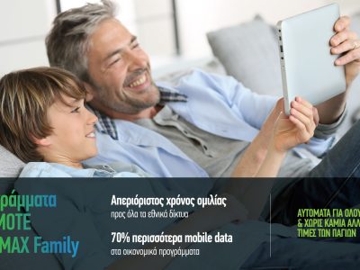 Deasy Cosmote: νέα οικογενειακά προγράμματα, χωρίς αύξηση τιμών με περισσότερα data Απεριόριστο χρόνο ομιλίας προς όλα τα εθνικά δίκτυα και 70% περισσότερα mobile data προσφέρει η ... By Κώστας Αρβανίτης30/10/2020