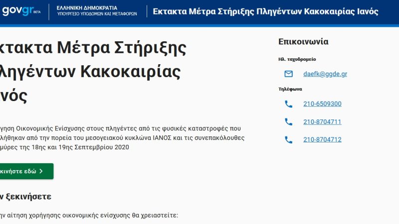 Mέσω του gov.gr η αποζημίωση των πληγέντων από την κακοκαιρία «Ιανός»