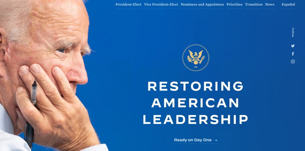 Η ομάδα Joe Biden έδωσε ένα πρώτο δείγμα γραφής της νέας αυτής εποχής. Δημοσιοποίησαν στο διαδίκτυο τη νέα στελέχωση της κυβέρνησης, έφτιαξαν αγγελίες για κενές θέσεις, και παρουσίαζαν ένα-ένα τα βιογραφικά των νέων κυβερνητικών στελεχών. Όλα αυτά συνέβαιναν στην twitter σελίδα του transition και στην ιστοσελίδα BuildBackBetter.gov που δημοσιοποιούσε την ατζέντα τους, τα πρόσωπα και τις ενέργειες μετάβασης στη νέα κυβέρνηση.