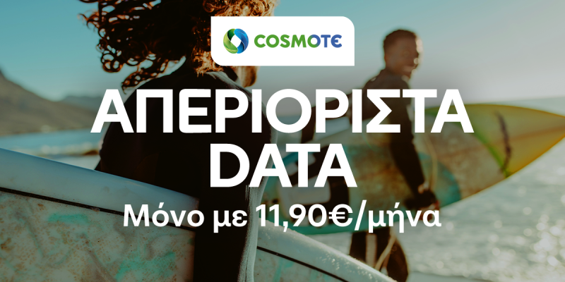 Απεριόριστα data με 11,90 ευρώ/μήνα, για όλο το καλοκαίρι, προσφέρει η Cosmote σε όλους τους πελάτες συμβολαίου, καρτοσυμβολαίου και Cosmote Neo. Οι παραπάνω συνδρομητές -οικιακοί και εταιρικοί- μπορούν να ενεργοποιήσουν την καλοκαιρινή προσφορά οποιαδήποτε στιγμή το επιθυμούν, έως και τις 31 Αυγούστου και να έχουν πρόσβαση σε απεριόριστα data στις ταχύτητες των δικτύων 4G και 5G, για 30 ημέρες από τη στιγμή της ενεργοποίησης του πακέτου.