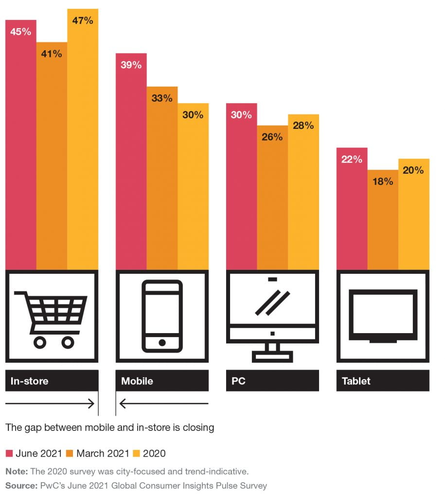 Παρόμοια είναι και τα συμπεράσματα της αντίστοιχης έρευνας της Wunderman Tomson, η οποία τονίζει ότι στη meta Covid εποχή η αγοραστική συμπεριφορά του καταναλωτή θα έχει αλλάξει ραγδαία. «Πλέον, ο καταναλωτής εμφανίζεται ψηφιακά εγγράμματος, με τη διάθεση να ξοδεύει μεγαλύτερα ποσά (σε σχέση με το παρελθόν) από τα online κανάλια» αναφέρει χαρακτηριστικά η έκθεση. Ξοδεύοντας όλο και περισσότερο από το κινητό του τηλέφωνο, έρχεται να προσθέσει η PwC στη δική της έκθεση.
