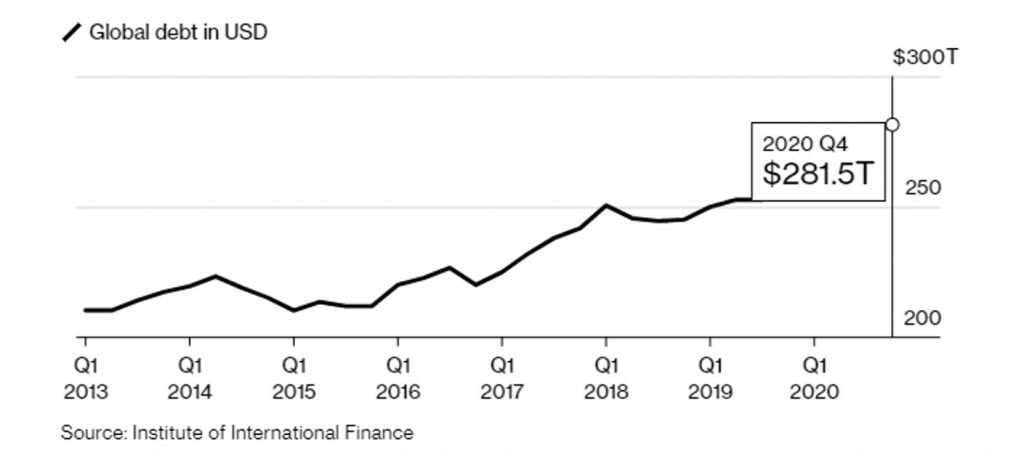 Οπως λέει το γνωστό λαϊκό τραγούδι, «οι ωραίοι έχουν χρέη», αλλά δεν ξέρω πόσο τελικά ωραίοι είμαστε, όταν ζούμε σε ένα τόσο υπερ-χρεωμένο κόσμο. Το παγκόσμιο δημόσιο και ιδιωτικό χρέος το 2020 ξεπέρασε κάθε ιστορικό προηγούμενο, αγγίζοντας τα 281 τρισεκατομμύρια δολάρια. Το χρέος είναι το +355% του παγκόσμιου ΑΕΠ σύμφωνα με το Institute of International Finance.