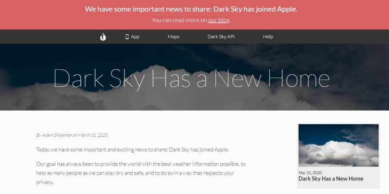 Το δημοφιλές στις ΗΠΑ app μετεωρολογικών προβλέψεων Dark Sky εξαγόρασε η Apple, όπως έγινε γνωστό χθες από τον ίδιο τον αμερικανικό κολοσσό.