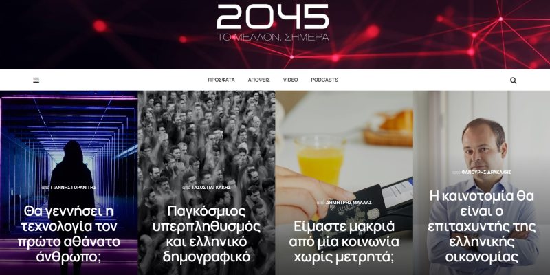 Κάποιοι ίσως να το επισκεφθήκατε ήδη, σε κάποιους μπορεί να πέρασε κάποια κοινοποίηση στα social media από το timeline σας, σε κάποιους άλλους όχι ακόμα. Μετά από ένα ταξίδι ενός χρόνου, σκέψεων, ιδεών και προβληματισμών και προετοιμασίας το 2045.gr είναι live εδώ και μερικές μέρες.