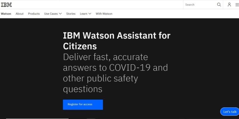 Συγκεκριμένα, η εταιρεία προσφέρει δωρεάν τη λύση ΙΒΜ Watson Assistant for Citizens που διευκολύνει την άμεση και έγκυρη ενημέρωση των πολιτών, απελευθερώνοντας πόρους του κρατικού μηχανισμού. Με την έξαρση της πανδημίας, οι πολίτες αναζητούν απαντήσεις σχετικά με τα συμπτώματα, τα νοσοκομεία αναφοράς και τους τρόπους ελέγχου/διάγνωσης του ιού, καθώς και την τρέχουσα κατάσταση των σχολείων, των μεταφορών και άλλων δημόσιων υπηρεσιών. Αυτό προκαλεί συμφόρηση σε όλες τις κυβερνητικές υπηρεσίες και γενικότερα σε όλες τις υπηρεσίες υγείας και στα call centers που διαχειρίζονται τα εισερχόμενα ερωτήματα.