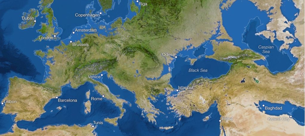 Ο περίφημος χάρτης που δημοσίευσε το National Geographic το 2018, στον οποίο οι Κυκλάδες, όπως και άλλες περιοχές της Ευρώπης έχουν εξαφανιστεί κάτω από την επιφάνεια της θάλασσας. Πρόκειται για μια ζοφερή πρόβλεψη, η οποία, όμως δεν αναμένεται να επαληθευθεί σε βάθος αρκετών αιώνων, ίσως και χιλιετιών.