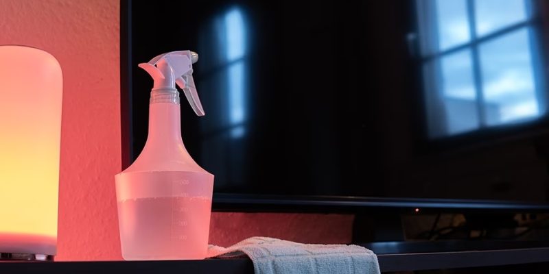 Επίσης θέλετε να αποφύγετε να χρησιμοποιείτε οποιαδήποτε προϊόντα που περιέχουν αλκοόλ ή αμμωνία, τα οποία περιλαμβάνονται σε πολλά καθαριστικά για τζάμια, καθώς αυτά τα χημικά θα κάνουν επίσης ζημιά σε μια οθόνη τηλεόρασης.
