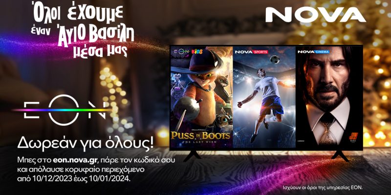Δωρεάν πρόσβαση στο πλούσιο περιεχόμενο της πλατφόρμας EON προσφέρει η Nova, έως και τις 10 Ιανουαρίου.