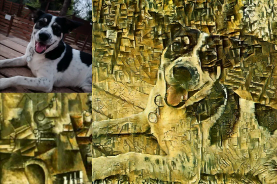 Σε μια ίσως περισσότερο αισιόδοξη και απλούστερη εφαρμογή, ζητήσαμε από το Nightcafe να βασιστεί σε μια υφιστάμενη εικόνα και να δημιουργήσει μια εικόνα «πειραγμένη» με το στιλ του Πικάσο. Χωρίς να το γνωρίζει (σ.σ. κανένα κατοικίδιο δεν υπέστη οποιαδήποτε κακομεταχείριση για τις ανάγκες αυτού του δημοσιεύματος), ρόλο μοντέλου, έπαιξε ο σκύλος Μπότι. Βεβαίως οι έμπειροι χρήστες του Instagram, του Snapseed και των δεκάδων άλλων εφαρμογών με φίλτρα μπορεί να προσπεράσετε αδιάφορα. Αλλά το σκεπτικό μας ήταν να δούμε το εύρος των δυνατοτήτων.