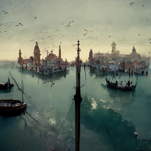 H Open AI και το DALL-E δεν απολαμβάνουν τη μοναξιά τους. Το Midjourney.com είναι αποτέλεσμα ενός ανεξάρτητου εργαστηρίου που αλληλεπιδρά με τους χρήστες μέσω ενός Discord server. Η περιγραφή δίνεται σε μια γραμμή που υποχρεωτικά ξεκινά με την εντολή “/imagine”, ενώ ο κάθε χρήστης μπορεί να δημιουργήσει συγκεκριμένο αριθμό εικόνων πριν «οδηγηθεί» προς το συνδρομητικό μοντέλο. Εδώ, το Midjourney παρουσιάζει τη Βενετία (ή μία πόλη που θα μπορούσε να είναι η Βενετία) από την οπτική γωνία ενός γλάρου που πετά ψηλά.