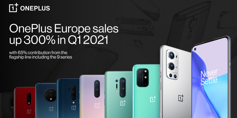 Δυναμική πορεία καταγράφει στην Ευρώπη το 2021 η OnePlus, η οποία κατάφερε στο πρώτο τρίμηνο της χρονιάς, σημαντική αύξηση των πωλήσεων κατά 388% και αύξηση των εσόδων κατά 286% (συγκριτικά με το ίδιο τρίμηνο του προηγούμενου έτους). Σύμφωνα με την ίδια την OnePlus, η ανάπτυξη τροφοδοτείται σε μεγάλο βαθμό από τη γκάμα flagship smartphone της, συνεισφέροντας 65% στα συνολικά έσοδα, συμπεριλαμβανομένης της σειράς OnePlus 9 που κυκλοφόρησε πρόσφατα.