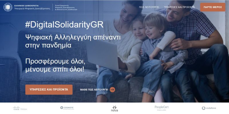 Όπως ανακοινώθηκε σήμερα από το Υπουργείο στην πρωτοβουλία #DigitalSolidarityGR ο κατάλογος των επιχειρήσεων που προσφέρουν ψηφιακές υπηρεσίες δωρεάν ή με χαμηλότερο κόστος διευρύνεται συνεχώς, προσφέροντας ευκαιρίες για εξ αποστάσεως εργασία, εκπαίδευση και ψυχαγωγία στο ελληνικό κοινό.
