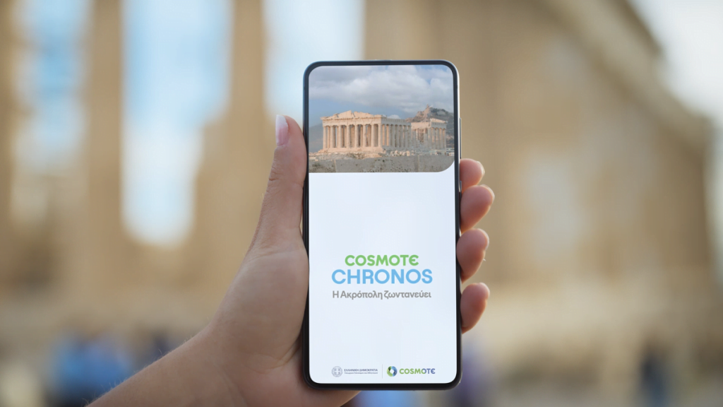 Αυτό τον πολυδιάστατο στόχο, εξυπηρετεί και η νέα καινοτόμα εφαρμογή COSMOTE CHRONOS που ζωντανεύει στη συσκευή μας την Ακρόπολη, όπως ήταν την εποχή της ακμής της. Χρησιμοποιώντας πολλές από τις παραπάνω τεχνολογίες, προσφέρει μια καθηλωτική εμπειρία στο χρήστη, προσθέτοντας και μια διάσταση gamification στην εξερεύνηση των μνημείων του Ιερού Βράχου.