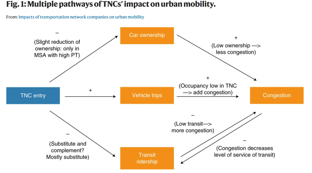 Το ότι δεν πρόκειται για τυχαία γεγονότα έρχονται να επιβεβαιώσουν οι αριθμοί που αφορούν στη χρήση των μέσων μαζικής μεταφοράς, οι οποίοι μειώνονται σταθερά τα τελευταία χρόνια. Για να αντιστρέψουν αυτήν την πτώση, τα μέσα μαζικής μεταφοράς θα έπρεπε να επεκτείνουν το δίκτυο κάλυψής τους κατά 25% – κάτι σχεδόν αδύνατο, όπως μπορεί κανείς να φανταστεί πολύ εύκολα. Από την άλλη, αν κάποιος συγκρίνει τον ρυθμό μείωσης των ταξί με αυτόν της αύξησης των οχημάτων ridesharing, γίνεται εμφανές πως οι επιβάτες των Uber/Lyft δεν ήταν το ίδιο κοινό με αυτό των ταξί, αφού τα τελευταία μειώθηκαν κατά πολύ λίγο. Οι συγκοινωνιολόγοι προειδοποιούν ότι αν η κίνηση συνεχίσει να αυξάνεται, οι επιπτώσεις στις τοπικές οικονομίες των πόλεων θα είναι μεγαλύτερες, καθώς οι μεγαλύτεροι χρόνοι μετακίνησης θα αποθαρρύνουν τον κόσμο από το να μετακινείται στις προβληματικές περιοχές.