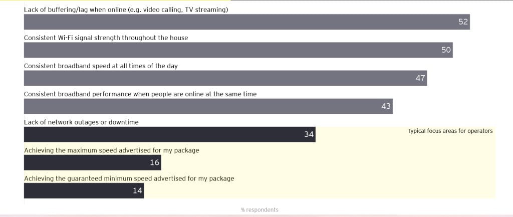 Οι καταναλωτές δεν αξιολογούν πλέον την ποιότητα της σύνδεσής τους με τη μέγιστη ταχύτητα που λαμβάνουν, αλλά με σύνθετες παραμέτρους που σχετίζονται και με τις υπηρεσίες που χρησιμοποιούν. Buffering και καθυστερήσεις, σταθερό WiFi σήμα σε όλο το σπίτι, σταθερή ταχύτητα στη διάρκεια της ημέρας είναι πλέον οι νέες βασικές προτεραιότητες (Πηγή: ΕΥ)