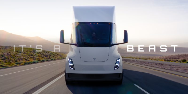 Η αμερικανική εταιρεία χαρακτηρίζει το Tesla ως το κτήνος. Τροφοδοτείται από τέσσερις ηλεκτροκινητήρες που προσφέρουν επιτάχυνση 0-100 σε 20 δευτερόλεπτα, ενώ η αυτονομία του αγγίζει τα 800 χιλιόμετρα. Μάλιστα, σύμφωνα με την εταιρεία, το Tesla Semi κατάφερε να ολοκληρώσει με μια φόρτιση ένα ταξίδι από το εργοστάσιο της Tesla στο Φρίμοντ μέχρι το Σαν Ντιέγκο της Καλιφόρνια. Από το βόρειο μέρος της Πολιτείας, στο νότιο συνολικής απόστασης 500 μιλίων, φορτωμένο με εμπόρευμα βάρους 37 τόνων.