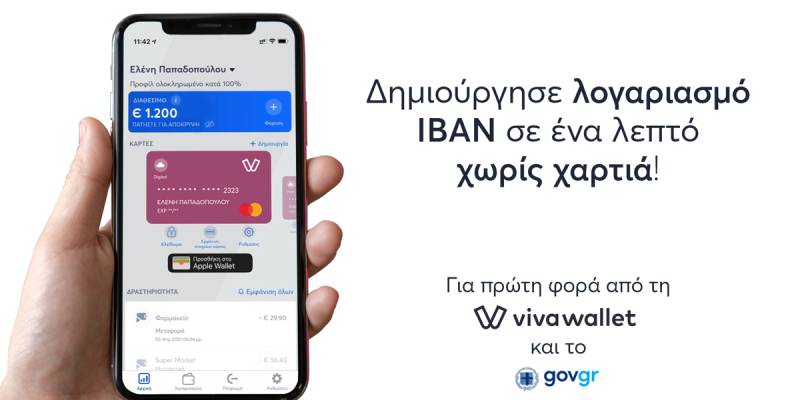 Τη δυνατότητα να ανοίξουν ΙΒΑΝ λογαριασμό και να πάρουν δωρεάν όσες ψηφιακές χρεωστικές κάρτες χρειάζονται χωρίς έγγραφα προσφέρει η VivaWallet στους Έλληνες καταναλωτές. Η VivaWallet είναι ο πρώτος τραπεζικός οργανισμός που προσφέρει αυτή τη δυνατότητα, για την οποία απαιτούνται μόνο η ταυτότητα (των καταναλωτών) και η πρόσβαση με κωδικούς TAXISnet.