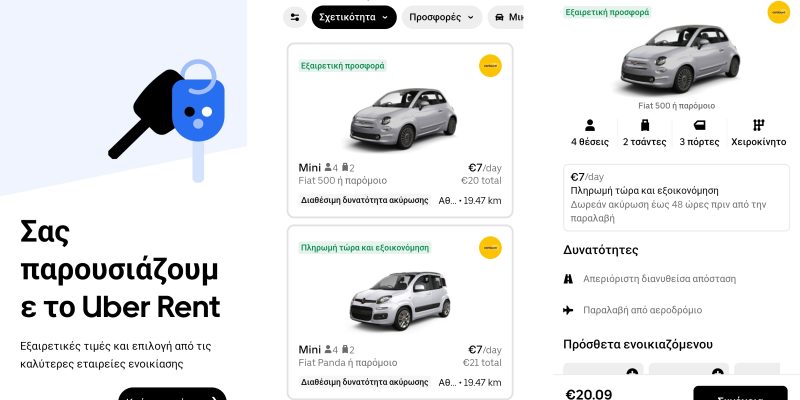 Η υπηρεσία Uber Rent είναι διαθέσιμη από σήμερα σε όλους τους συνδρομητές της εφαρμογής στην Ελλάδα.